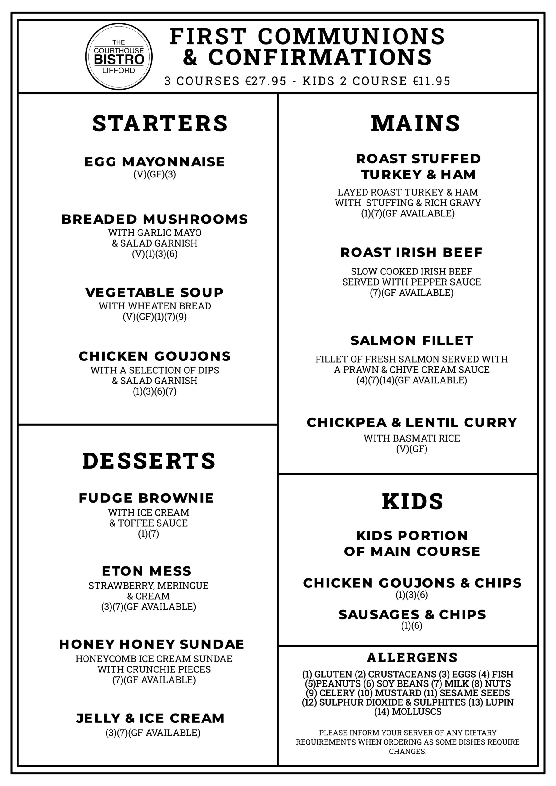 Set within what was once Donegal’s Grand Courtroom, the Courthouse Bistro offers a distinctive dining experience in a historic setting. Serving modern Irish cuisine from Monday to Friday, the menu includes light snacks, main courses and daily specials to suit a range of tastes. In addition to breakfast and lunch menus, the bistro caters for conferences and private events outside normal opening hours. Guests are welcome to browse the party menus or contact the team to discuss specific requirements.